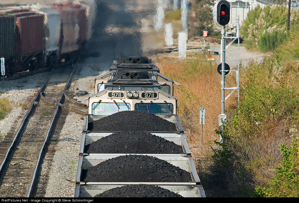A pair of SD70MAC DPUs push for all their worth on the rear of a coal load headed south on UP's Midlothian Sub.