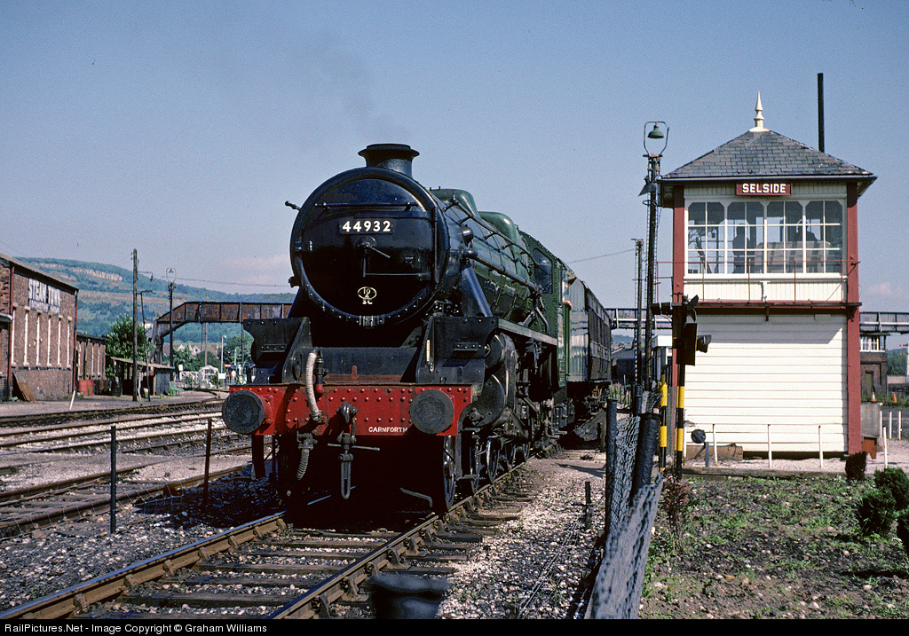 | An old shot from 1978. Black Five no. 44932 wearing incorrect BR green livery. In the days when Carnforth Steamtown was open to the public. There was a short line for giving rides to the public. The loco and vintage stock were being used for the rides. |
