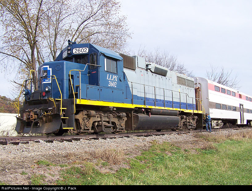 | RailAmerica GP-38-2 #2602 shoving the 4 new Hocking Valley Commuter Coaches to Smead Rd. Hocking Valley 5833 will take them the rest of the way to Nelsonville. |