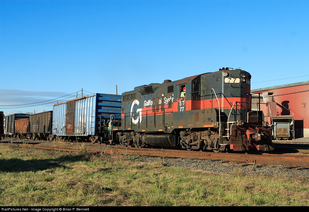 | Morning sun shines on WA-2 doing some work at the east end of the yard before assembling its train of six Cavendish loads and heading northeast. The building in the background is the large Huhtamaki Packaging factory. |