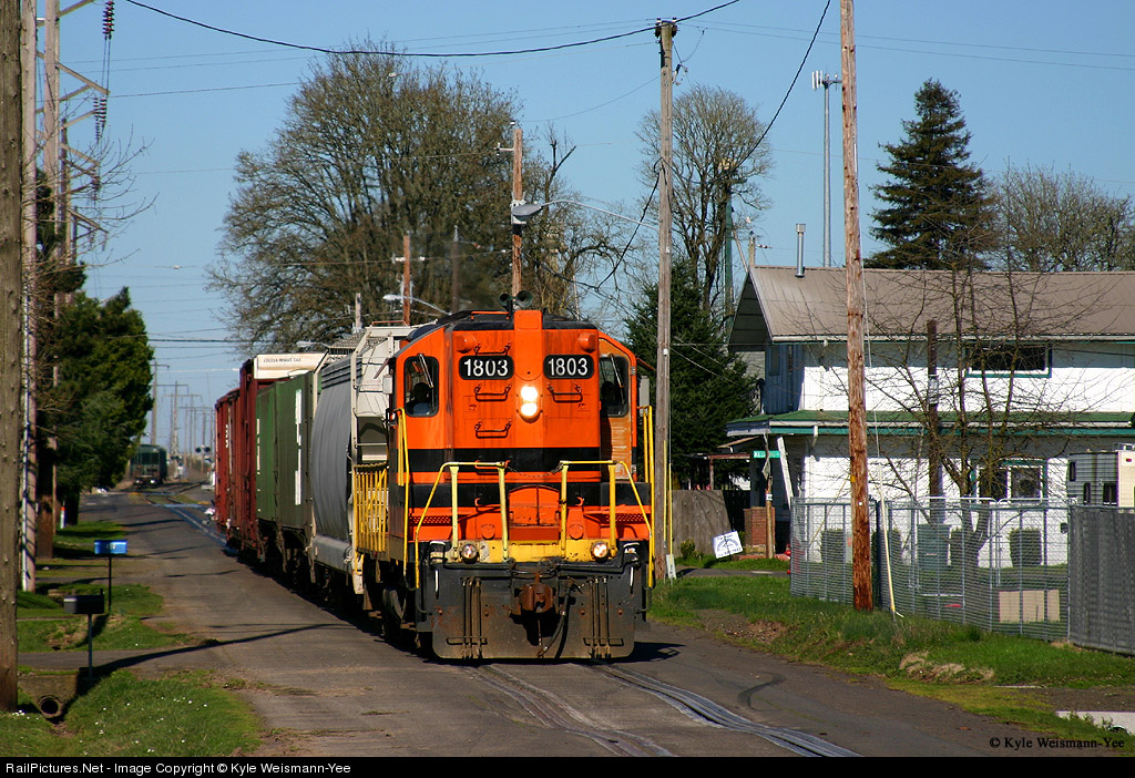 RailPictures.Net Photo: PNWR 1803 Portland & Western Railroad EMD GP9 at Harrisburg, Oregon by Kyle Weismann-Yee