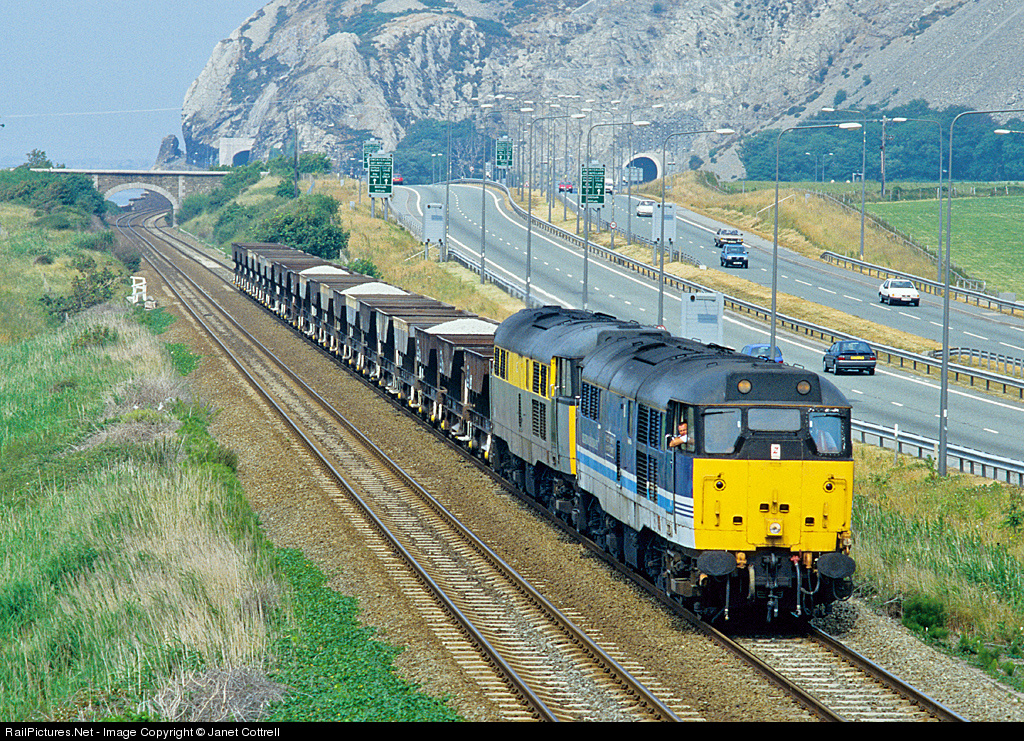 31439 and 31119 run alongside the A55 road en route from Guide Bridge to Penmaenmawr.