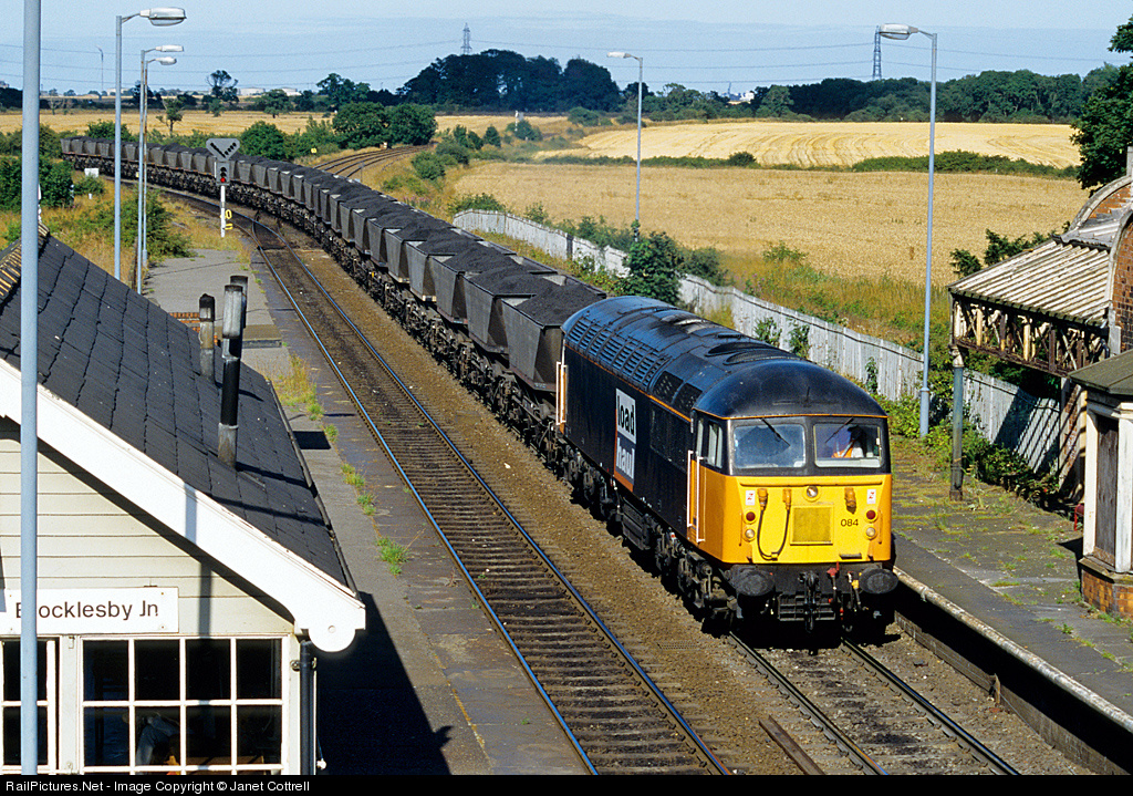 | In freshly applied Load Haul livery, 56084 joins the main line at Brocklesby on the 1652 Immingham to Foxton. |