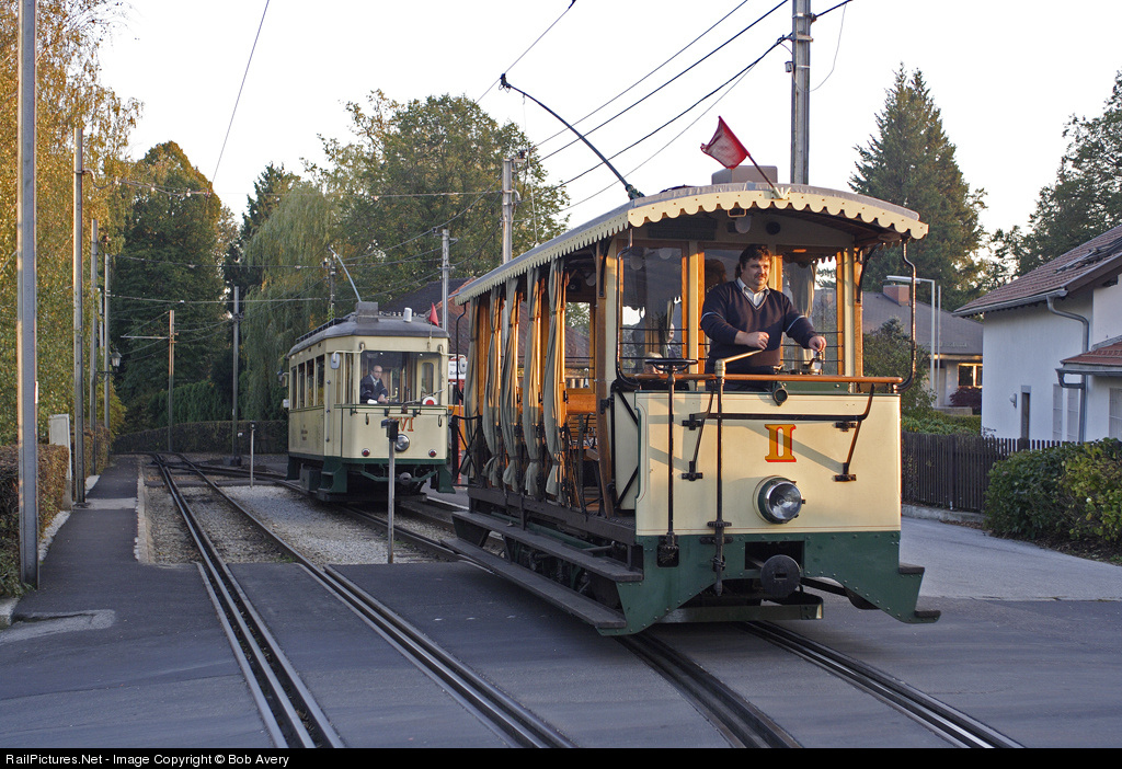 | The Postlingbergbahn claims to be the world's steepest adhesion worked railway, with stretches at 1 in 9 - about 11%. Car 2 pulls awy from one of the intermediate passing loops. The line is shortly to be incorporated into Linz city tram network, which will mean the end of the road for these charismatic cars. |