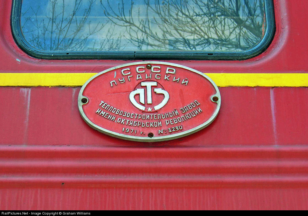 | The builder's plate of a Soviet-built diesel loco on display at the Transport Museum in Bratislava. It's interesting for a Brit like me to see cyrillic characters and the letters CCCP on a works plate. |
