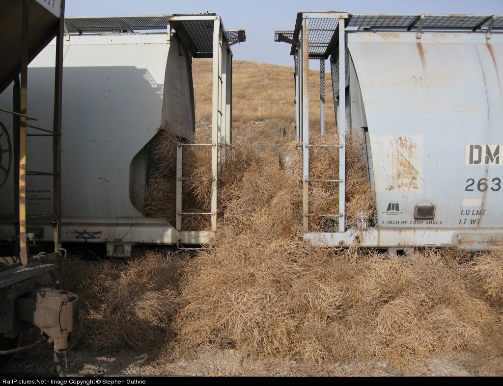 Prairie railroading! This is the north switch at Fairburn and it is blown in with Tumble weeds. The first 5 cars of our pickup where "Drifted" in with tumble weeds up to 9 feet high.
