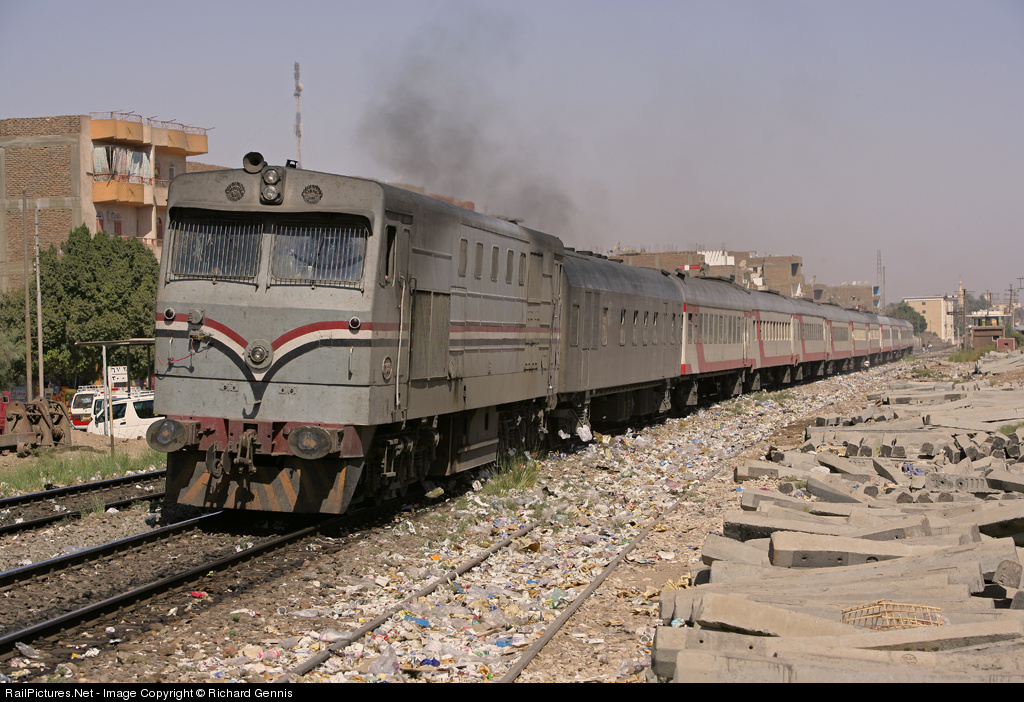 3144 works a southbound train from Luxor to Aswan,passing the rat infested location of Nagaa-khataba