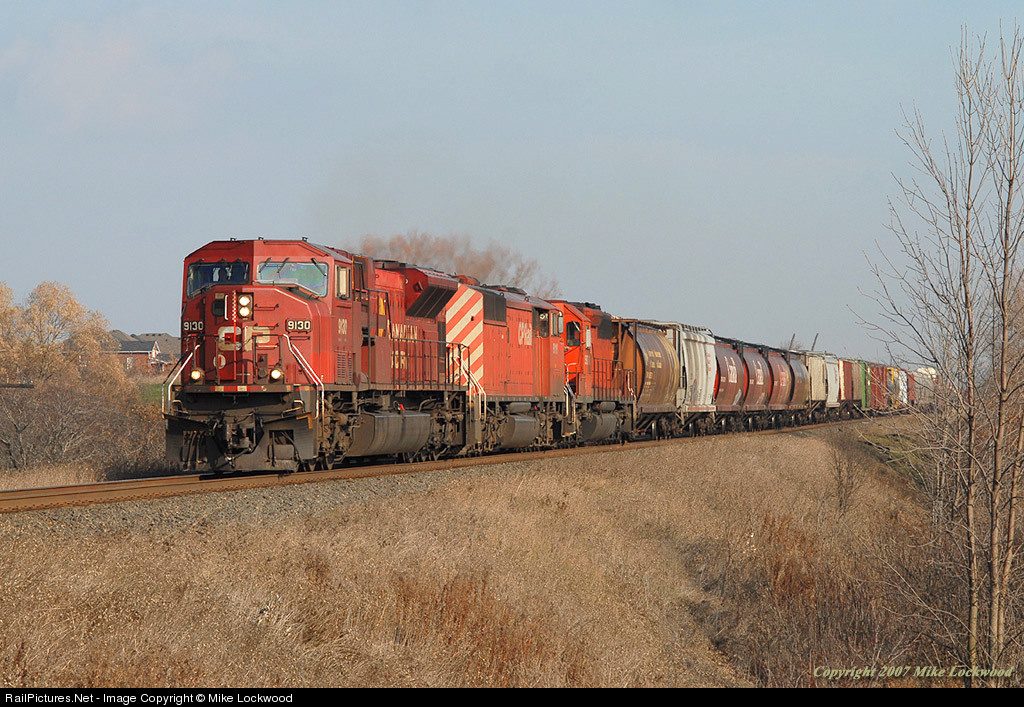CP train 231 crests the grade west of Bowmanville, Ontario, behind CP 9130, 9018 and 5679. An SD9043MAC leading on the Belleville Sub is not the most common occurance these days, thanks the swelled ranks of AC4400's and ES44AC's in CP's fleet. 1126hrs.