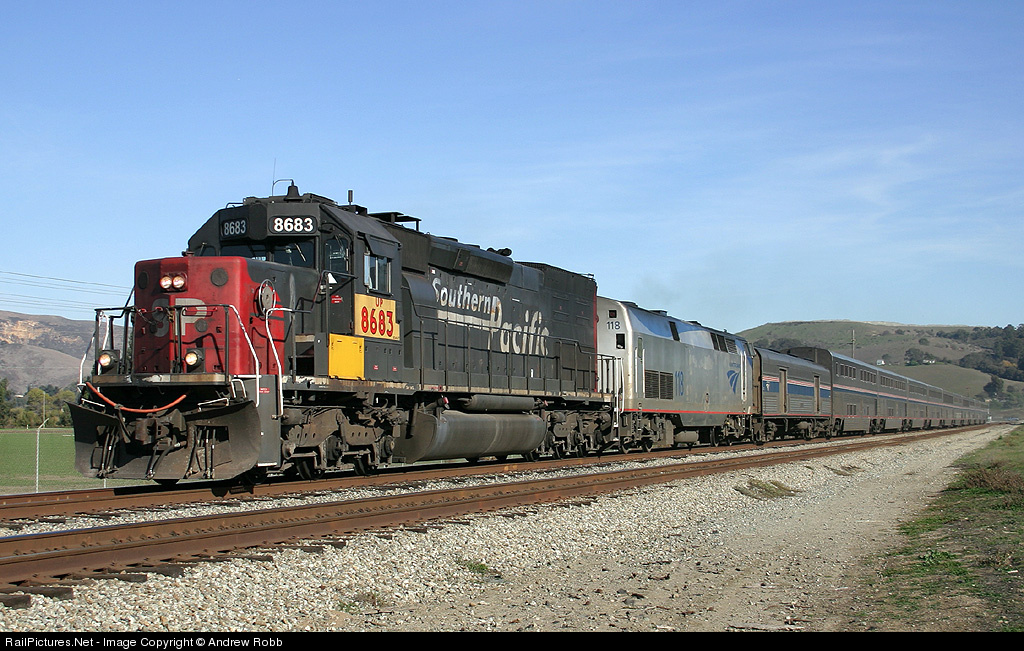 | UP 8683 still with no patch on the nose leads the #11 Coast Starlight. Problems with the lead locomotive had Amtrak riddled with problems. Since Caltrain didn't have any available locomotives, UP allowed Amtrak to Use 8683 off of the San Jose local for Power. |