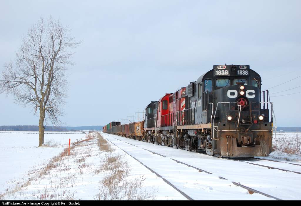 RailPictures.Net Photo: OC 1838 Ottawa Central Railway MLW RS-18 at deBeaujeu, Quebec, Canada by Ken Goslett