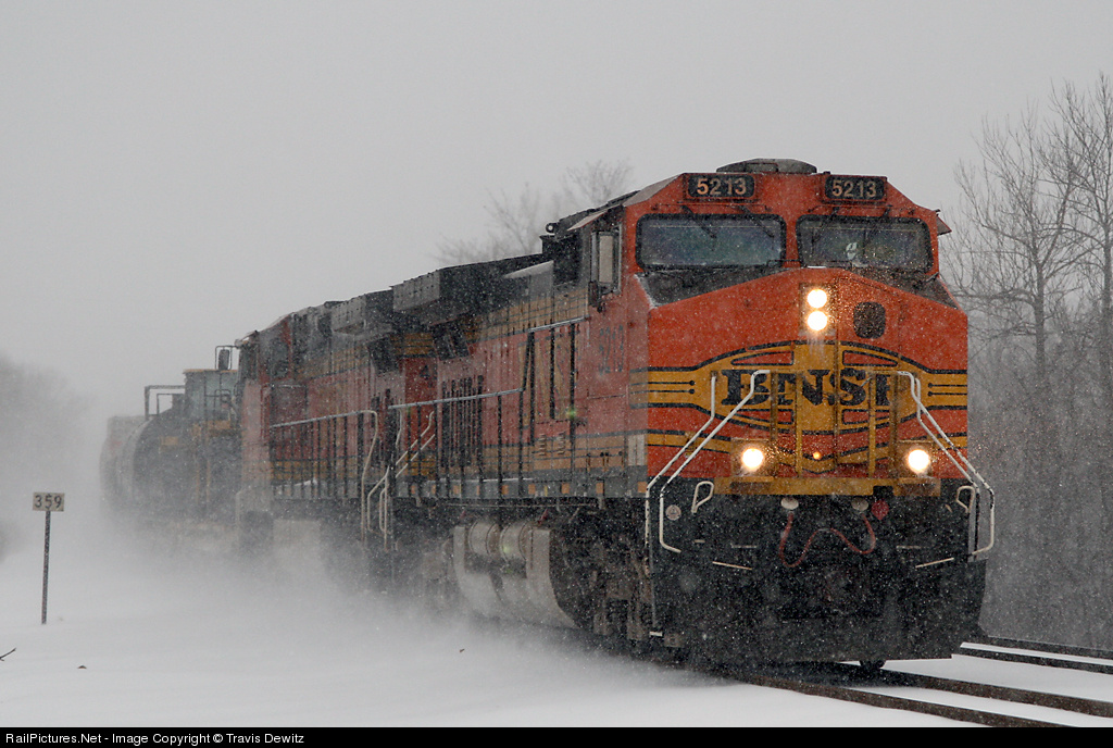 | BNSF 5213 heads towards the Twin Cities during Wisconsin's first snow storm of the year (this winter season anyways, the first of the year would have been in January I guess). |