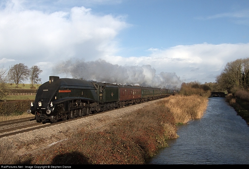 A4 Pacific 60009 "Union of South Africa" makes a fine site as it passes Beech Grove Lock with a London Victoria - Bristol railtour on a crisp winters day