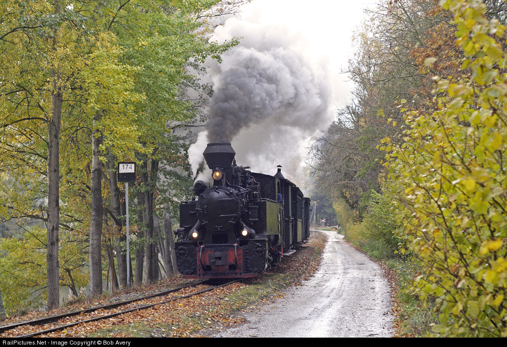 | This big narrow gauge 0-8-0T, built as recently as 1958, among the trees on the NG line to Strizovice. The line is currently closed beyond Strizovice for repairs, this was the first train for some time. |