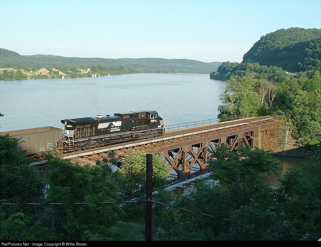 NS 9804 headed west on the River line to Mingo Jct., Ohio