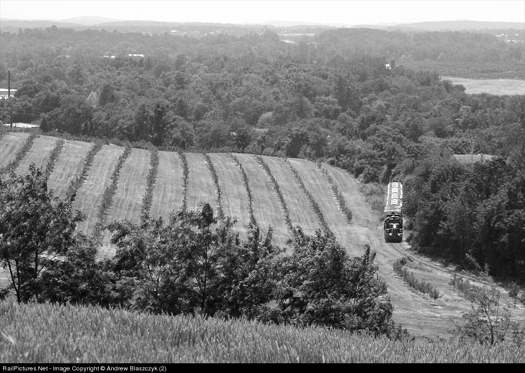 Little fish, big sea. The Gettysburg Northern local to Mt. Holly Springs passes aone of many apple orchards located in southeastern PA.