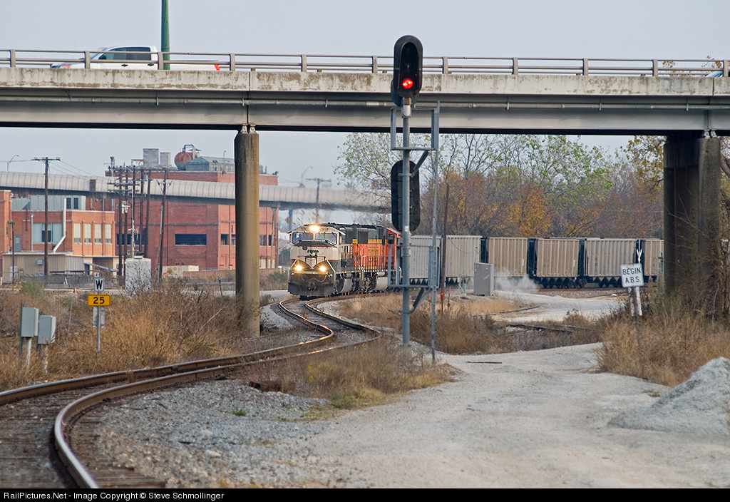 A northbound BNSF coal empty negotiates the extreme north end of the ex-Burlington/Rock Island line where it connects to the T&P at Forest Avenue.