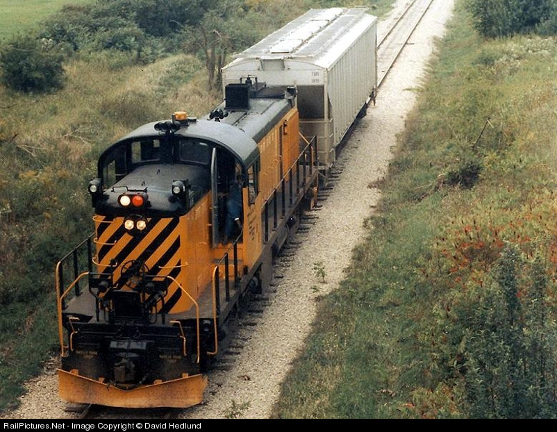 Built in 1946 for the Detroit & Mackinac, TSBY RS-2 466 rolls north with one car for the elevator in Richville MI.