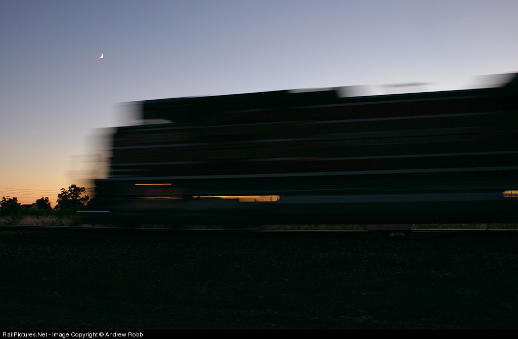 UP1996 races through the Countryside of Sacramento under the cresent moon at the end of a Long day of chasing