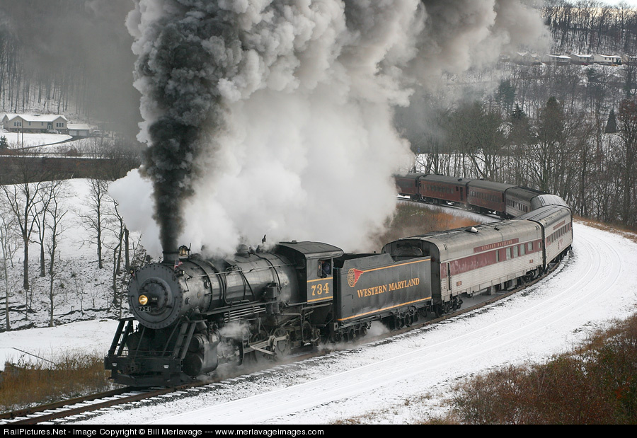 RailPictures.Net Photo: WMSR 734 Western Maryland Scenic Railroad Steam 2-8-0 at Cumberland, Maryland by Bill Merlavage --- www.merlavageimages.com