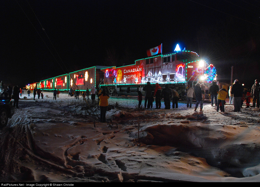 | Despite the cold temps and frigid wind chill as can be seen by the blowing Canadian flag, a large crowd showed up in Annandale for the arrival of the CP Holiday Train. Annandale is about 1 hour NW of Minneapolis. |