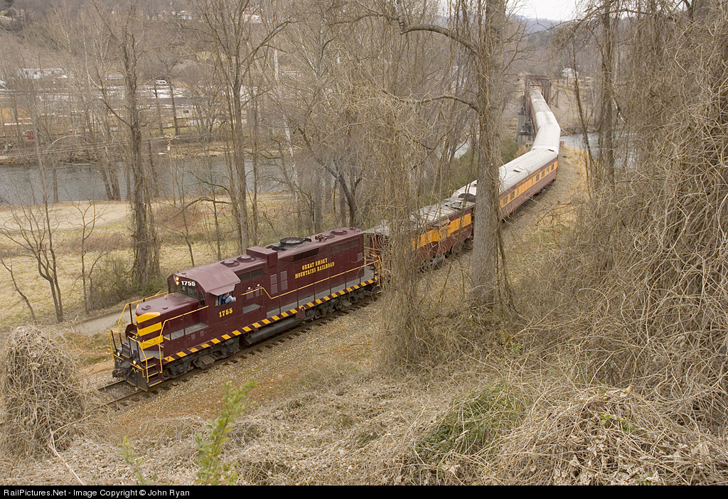 RailPictures.Net Photo: GSMR 1755 Great Smoky Mountains Railroad EMD GP9 at Bryson City, North Carolina by John Ryan
