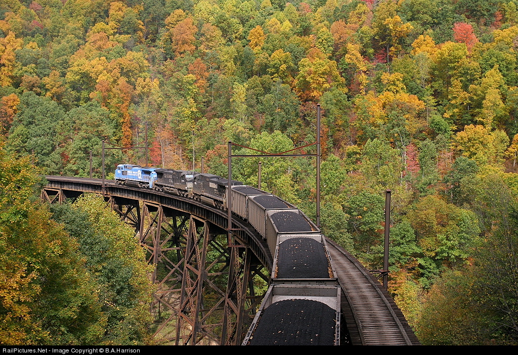 Striving for Clarks Gap on a Hill Run, U86 pushers are down to a crawl as they prepare to enter Tunnel 9 under the photographer. The WV hills are alive with color on the P-D.