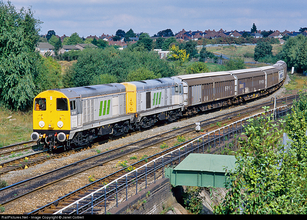 | Despite nominally belonging to British Rail Telecomms, 20128 and 20075 were frequently used on other work such as this trip from Bloxwich to Bescot Yard. |