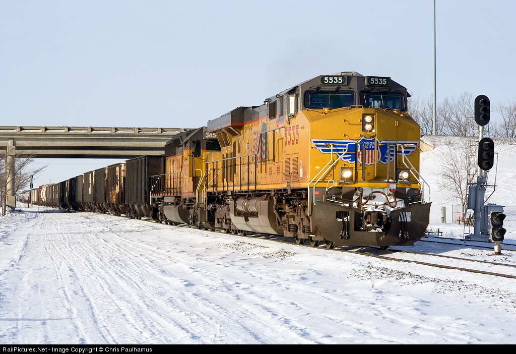 About a week after its inaugural run, the high priority Lincoln, NE - Grand Forks, ND manifest pulls into the yard on a cold morning behind a pair of UP visitors. The H-LINGFD replaces the H-LINDIL in hopes of alleviating congestion further south in the Dilworth Yard. I'm all for new trains to the area, but is it really worth the influx of solid Union Pacific power?!? Learn more at Grand Forks Railfanning.