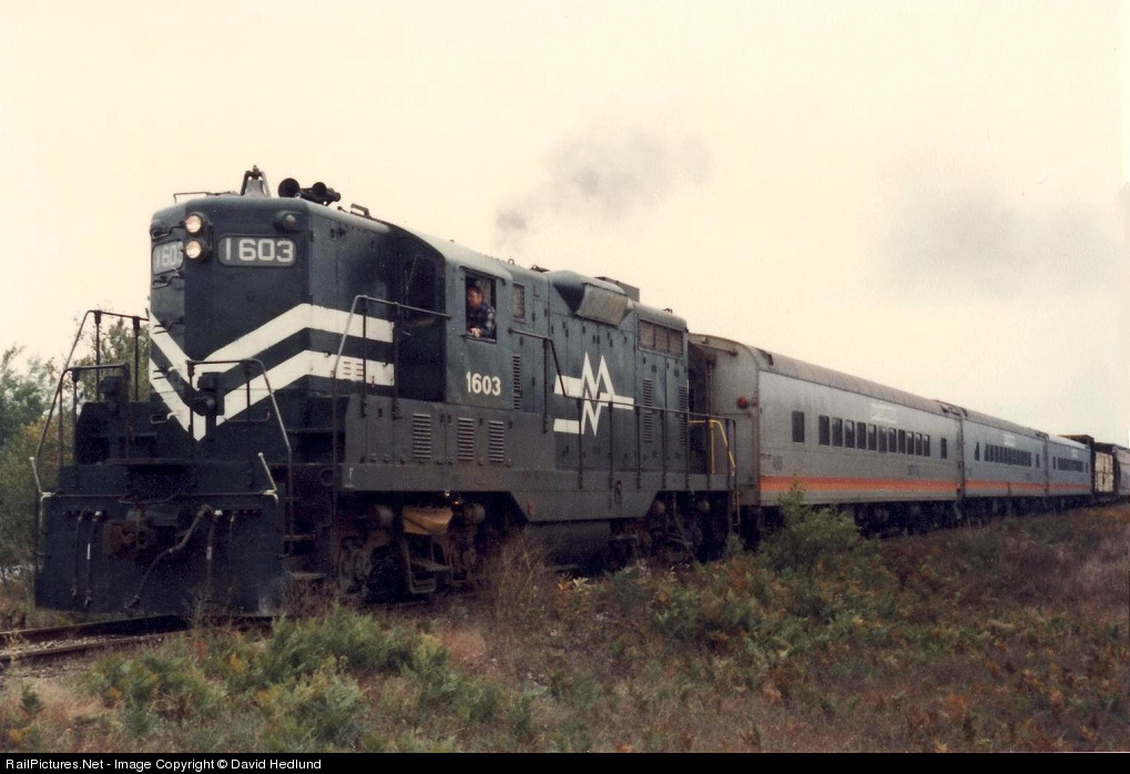 MIGN GP7 1603 has a mix of passenger cars & freight as it works it way south of Kalkaska MI.