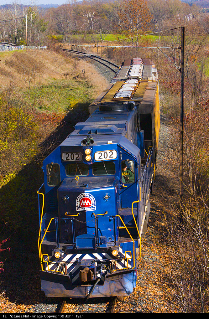 | How many active lines still have active tell-tales on them? Washington County Railroad GP38 202 leads a sort train through the countryside south of Wells River, Vermont on a glorious autumn afternoon. |
