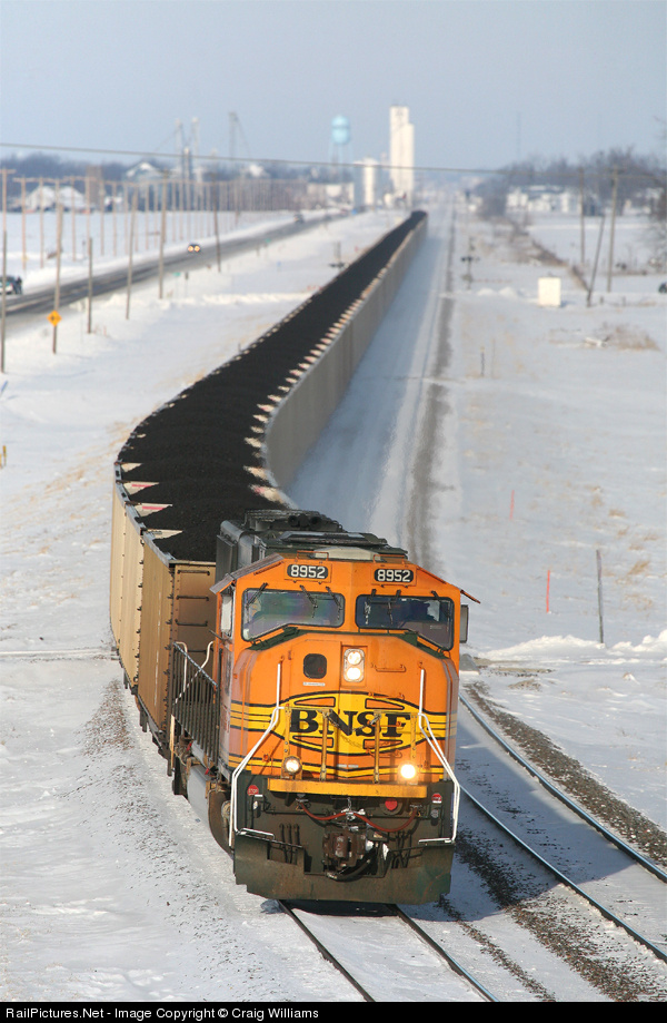 This is the 1st trip of the year for this Cordero Mine, WY to Gateway, IA coal train. The train is about to Burlington, IA where the train will head down the K-Line to Montrose, IA. These 109 cars of coal will be loaded into a barge for the trip up the Mississippi River to a power plant. BNSF 6209 is bringing up the rear.