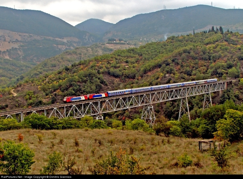 Adtranz 220-015 hauling train E-500 from Athens to Thessaloniki, passes Papadia bridge.