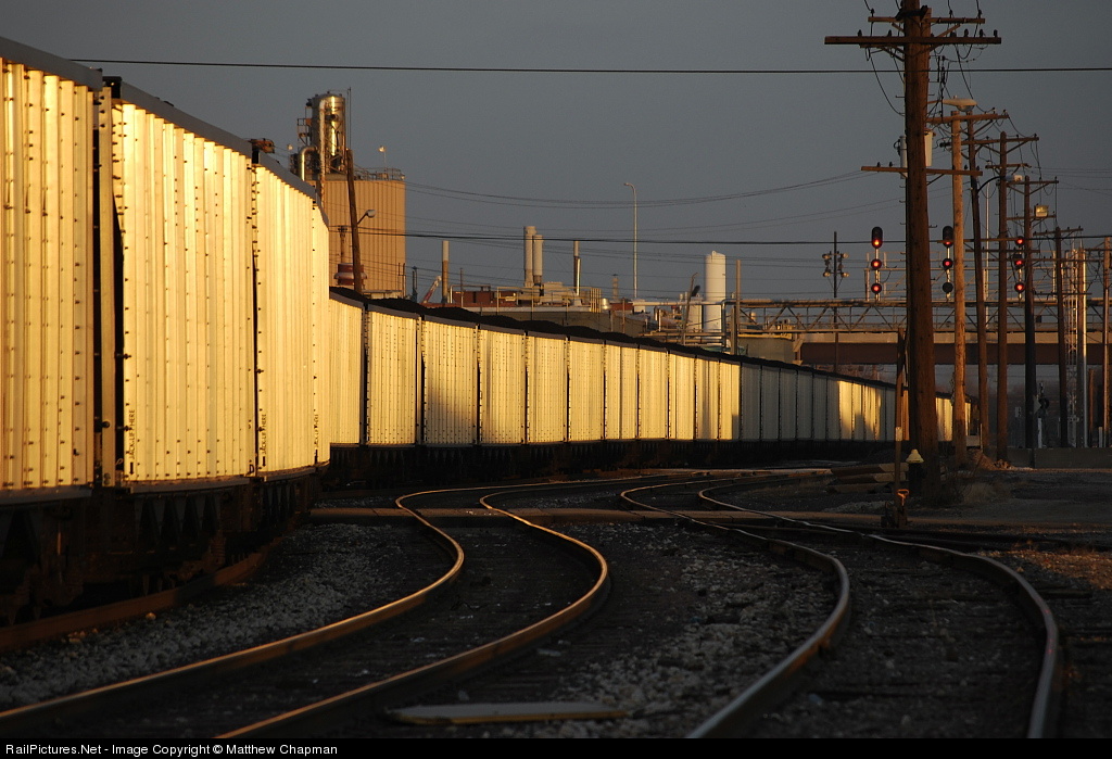 | The early morning light illuminates the long string of coal hoppers behind UP 7258 as it makes its way through the Bremen Interlocking on its way to the Merchants Bridge. First photo posted using my new Nikon D40 DSLR! |