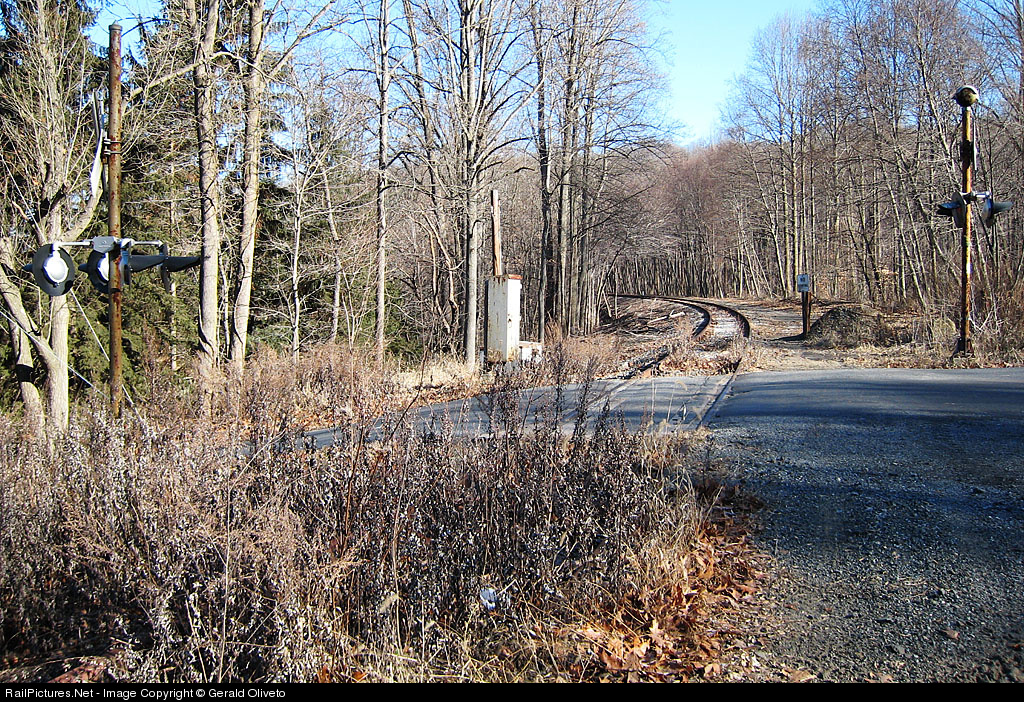 Once the site of the Ludlow-Asbury Station, this area along the out of service CNJ Main Line has turned into a quaint isolated mountain town with a only a few nearby residences. This photo was taken from the platform of the Ludlow-Asbury Station, looking east towards Jersey City Terminal (sixty miles from this location). The main line was reduced to a single track during the later CNJ years due to declining passenger traffic west of Raritan. Back in the good old days, westbound CNJ passenger service continued as far as Bethlehem and Allentown, Pennsylvania. For photos of this line farther east, view photo 217206 and photo 213940.