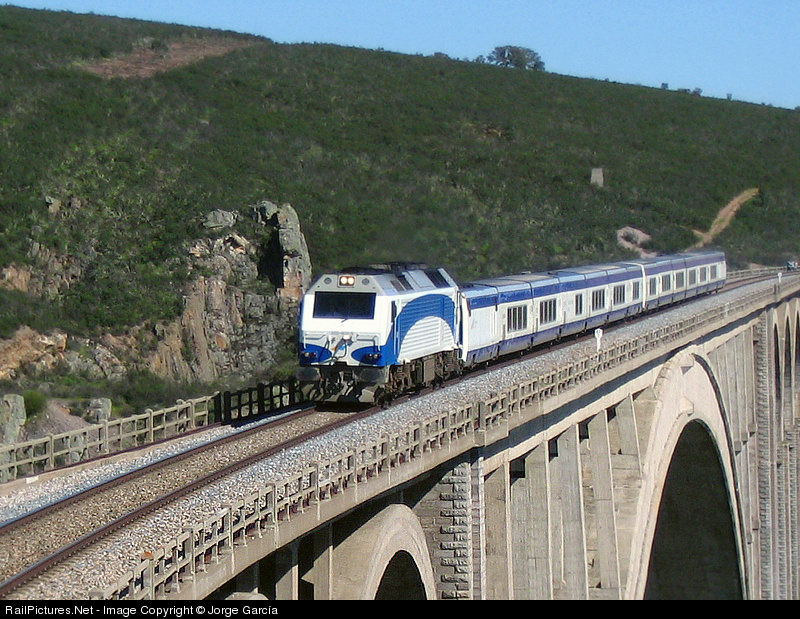 Talgo Madrid - Vigo, Pontevedra and La Coruña, on the viaduct Martin Gil in the non-electrified direct line between Medina del Campo and region of Galicia.