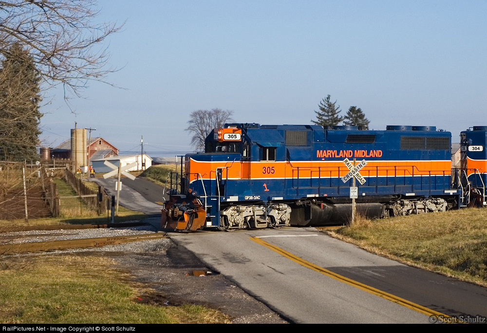 RailPictures.Net Photo: MMID 305 Maryland Midland EMD GP38-3 at Keymar, Maryland by Scott Schultz