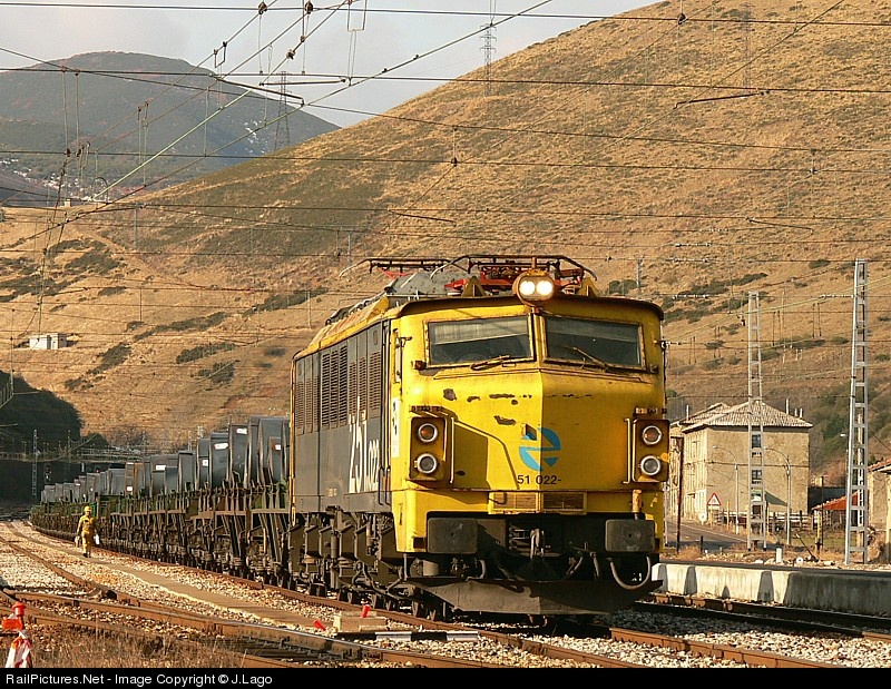 | Steel train Trasona-Sagunto maneuver in Pajares Pass with a most powerful electric locomotive in Spain, the japanese 251 class. |