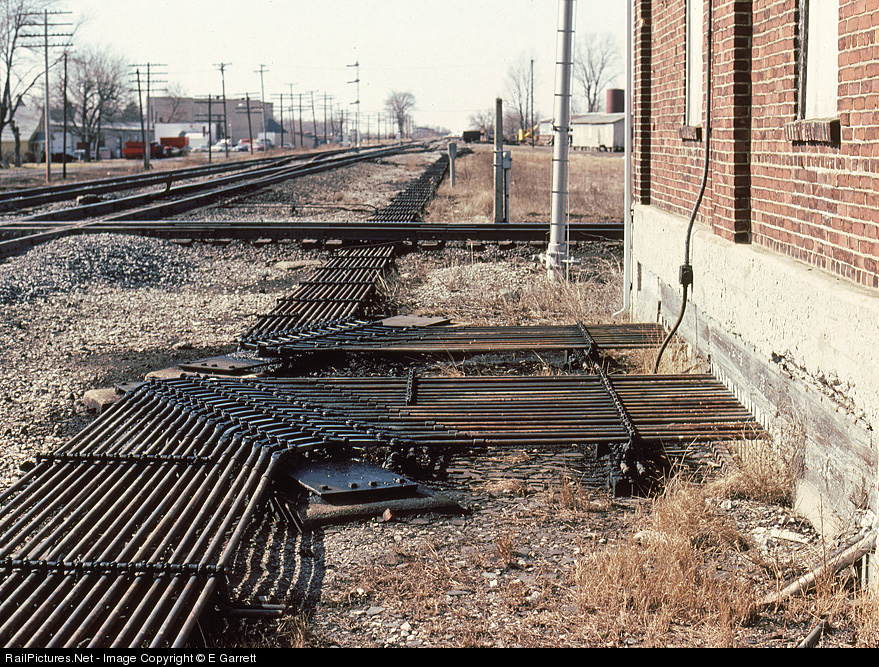 | Talk about an armstrong plant! These rods activated the switches and signals (including the semaphores in the background) that protected the crossing of the B&O (double track) and DT&I at Hamler, an otherwise sleepy rural town in northwest Ohio. Had to stay in shape to work here! |