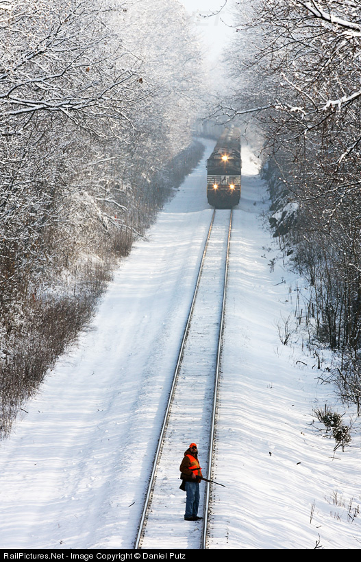This hunter was intently staring into the woods at left as I waited for the train to get near. When I stepped out of the car are focused down the rails, he stared up at me intently and stepping into the gauge. Where he remained until just after this shot