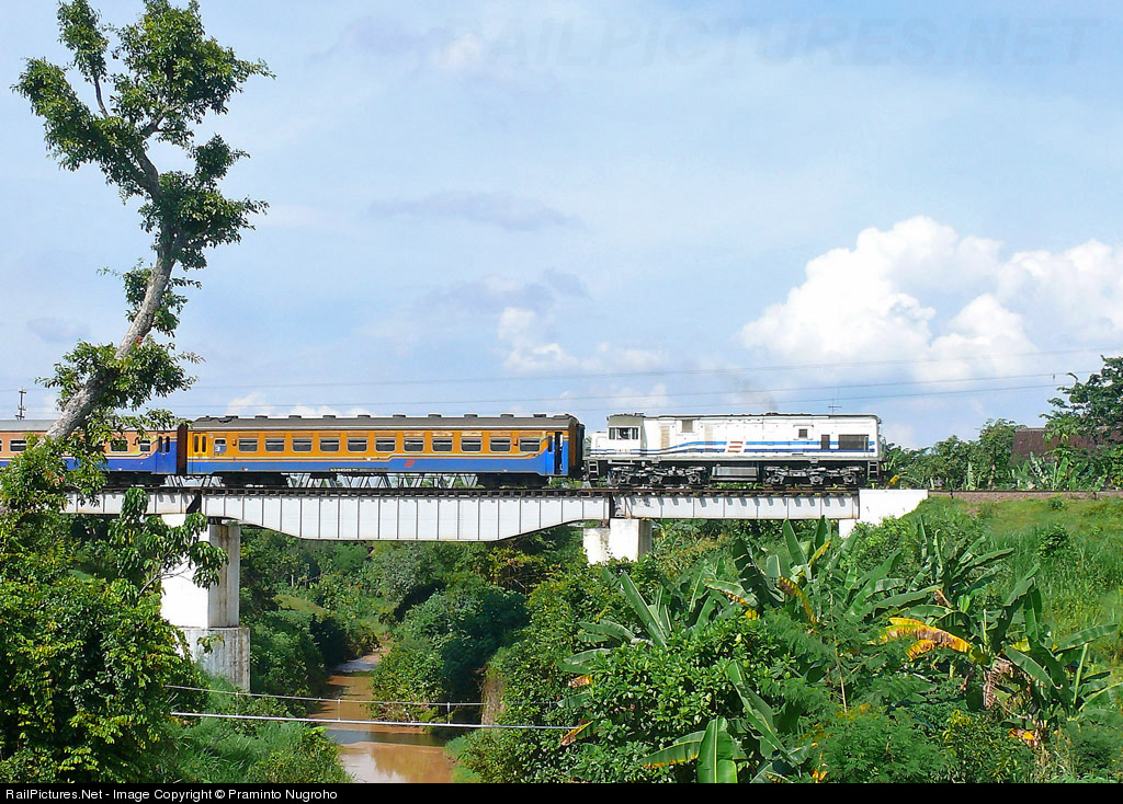 Logawa train from Purwokerto was hauled by a GE U18C crossing Wilangan bridge.