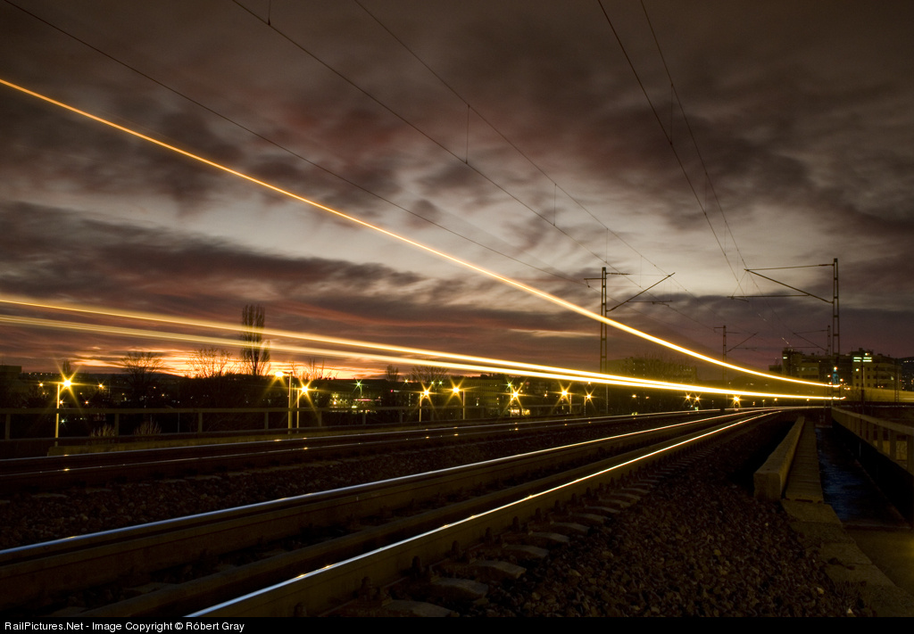 Stack train heading to Budapest-Ferencváros in the dusk.