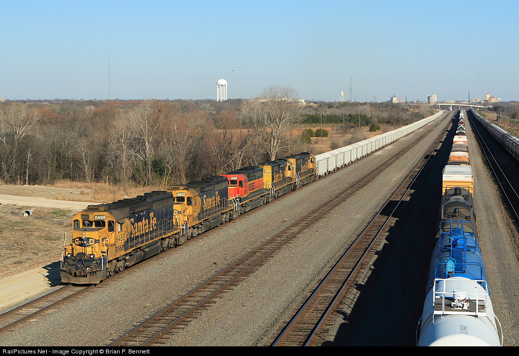 BNSF 6488 East has became BNSF 6488 South and arrives from Brownwood at the South Fuel Pads and prepares for a quick crew change before proceeding southeast towards Houston. My excitement at discovering the power for this rock train will not be topped for a while.