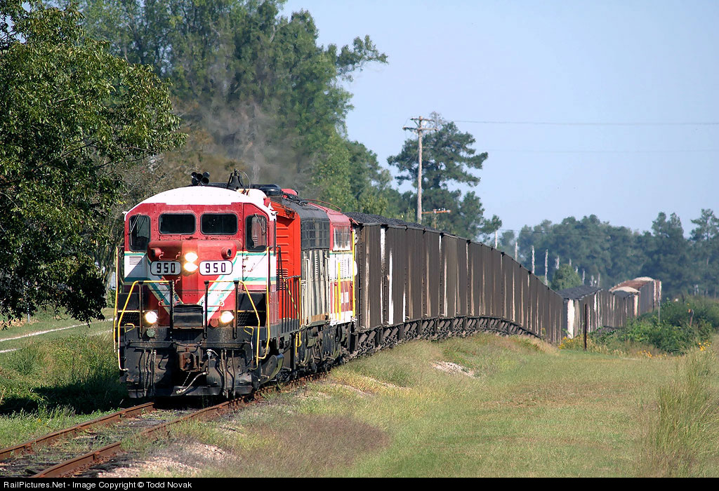 | Carolina Southern 950 moves 45 loads of coal over the rolling grades between Chadbourn, NC and Conway, SC. |