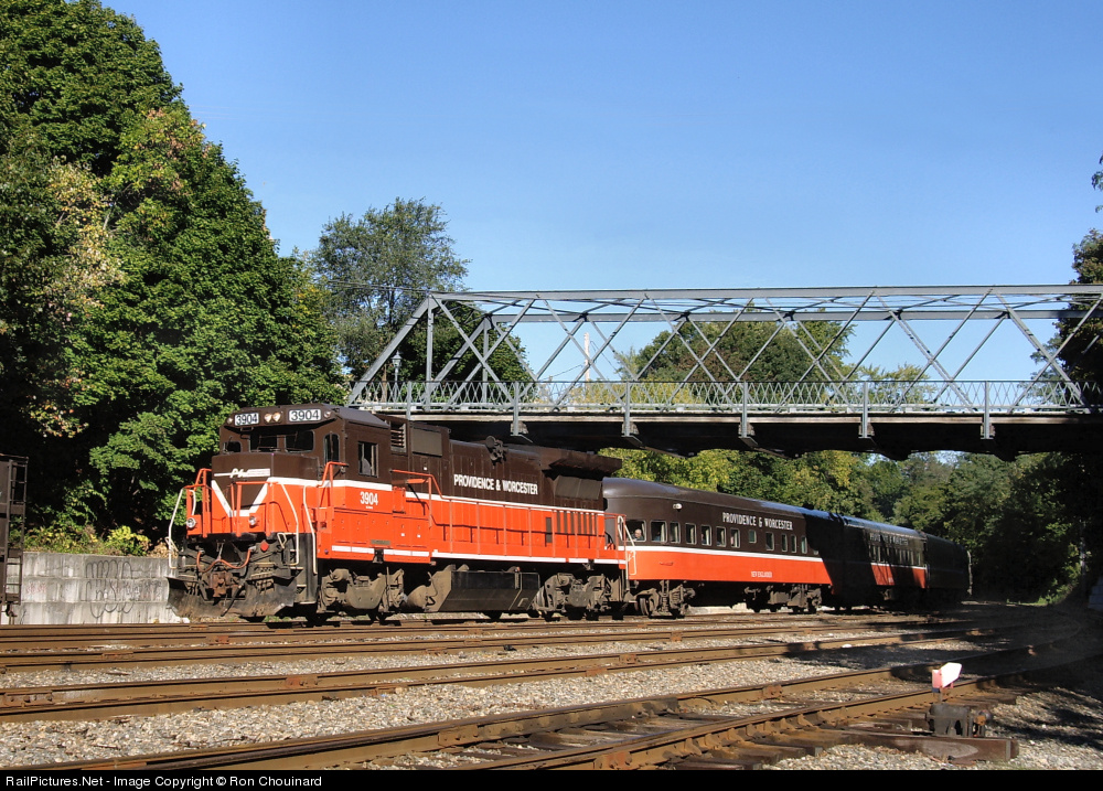 Fall Circle Tour sponsored by the Massachusetts Bay Railroad Enthusiasts on the Providence and Worcester Railroad, seen running under the historic Church Street Bridge, spanning the Valley Falls yard on a perfect Saturday morning. Tour ran from Worcester down the Providence main, then Amtrak to Groton, CT with the final leg back to Worcester using the Norwich main thru Connecticut