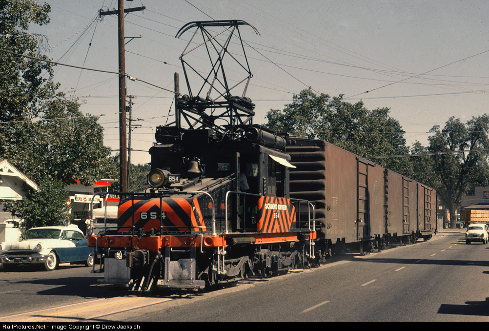 RailPictures.Net Photo: SN 654 Sacramento Northern GE B+B electric at Yuba City, California by Drew Jacksich