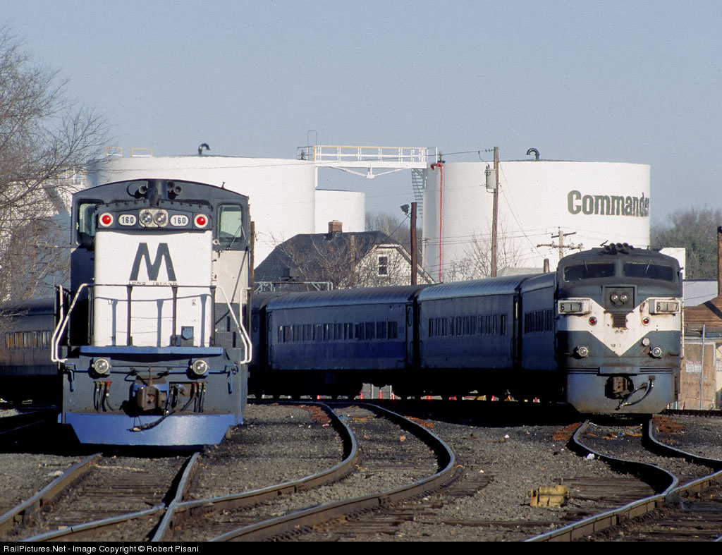 An MP15AC and FA1 Power Pack layover in the yard. LIRR 617 is former New Haven 0428, Penn Central 1333.
