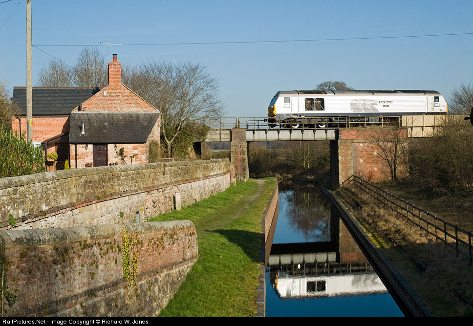 67029 “Royal Diamond” crosses the Montgomery Canal at Queen’s Head on the 0Z10 12.55 Wolverhampton to Crewe on the first day of the route learning trips for the new WSMR service.
