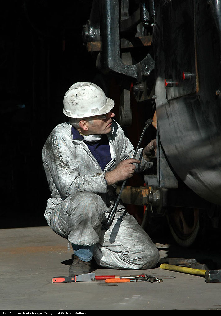 | Lewis Hicks, a volunteer from the Kentucky Railway Museum, prepares R.J. Corman's QJ steam locomotive for service. Lewis & others from KRM / RJC are working to have her ready to go before the end of the February, 2008! My thanks to Matt Schwerin & everyone at RJ Corman for offering tours of this locomotive! |