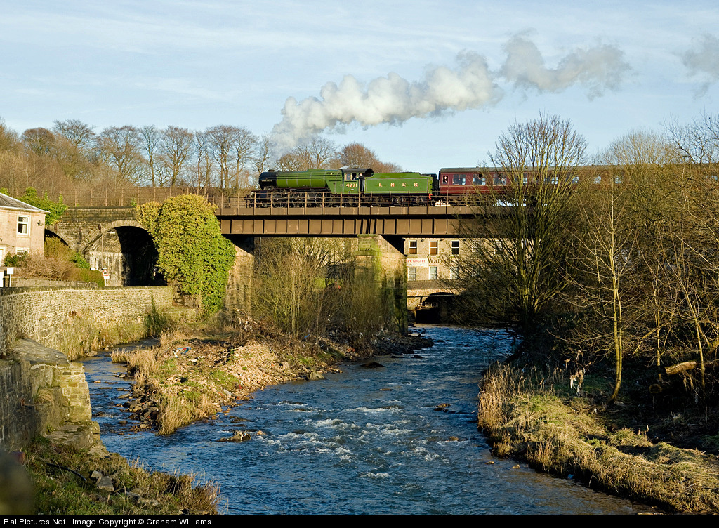 LNER V2 no. 4771 Green Arrow crosses the river at Summerseat on its last trip northwards on the East Lancs Railway. In a few weeks, this lovely loco will be a permanenet non-steamable static exhibit. This is because it needs a new cylinder block and the owners, The National Railway Museum, will not sanction a new one, because it will spoil the originality of the loco. Such a shame. You should have heard it barking up the incline.