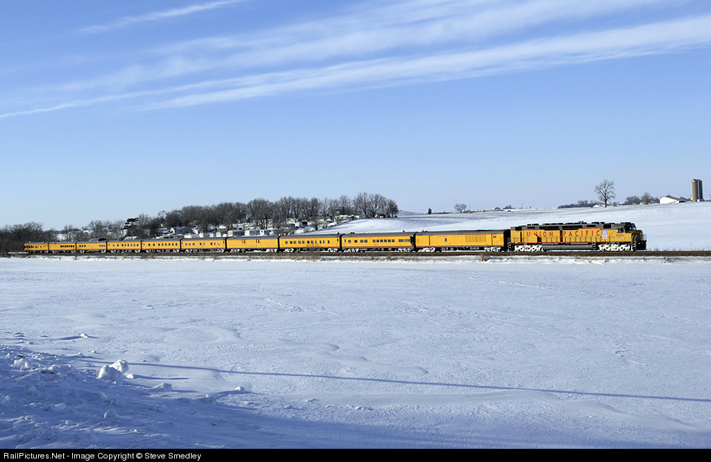 Looking more like a model train, the last operating Union Pacific Centennial DD40X, UP 6936 East, operates an officers special as seen from an ice covered farm road just east of Round Grove, Illinois on Feb. 15, 2008. Thanks to ''Doctor Digital'' for the phone tip